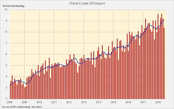 Pokles dopytu Číny, najväčšieho dovozcu ropy na svete, prišiel v kritickom čase, keď je v otázke celkový rast dopytu v Ázii, ktorý tiež ohrozujú obchodné vojny, silný dolár a vyššie náklady na financovanie.