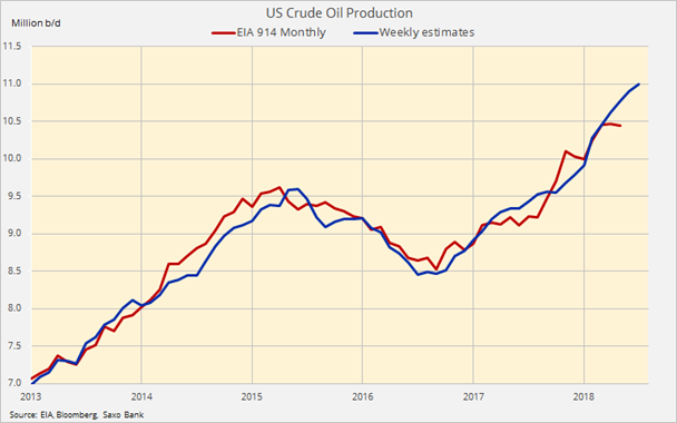 Trh prakticky odignoroval mesačnú správu o ťažbe ropy od Energetického informačného úradu, ktorá uvádza, že americká produkcia v máji klesla o 30 tisíc barelov denne.