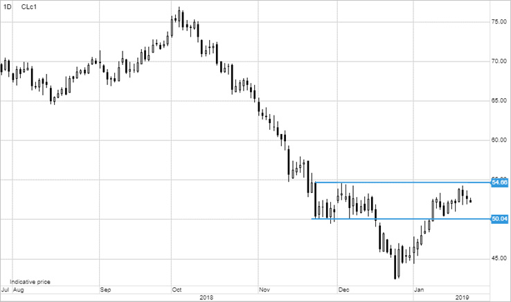 Vzhľadom na neistotu vo Venezuele sa bude ropa obchodovať v aktuálnom pásme, tak ako je zobrazené na grafe. Akákoľvek geopolitické nedorozumenie môže byť vzhľadom na súčasné riziká ekonomického rastu len krátkodobé.
