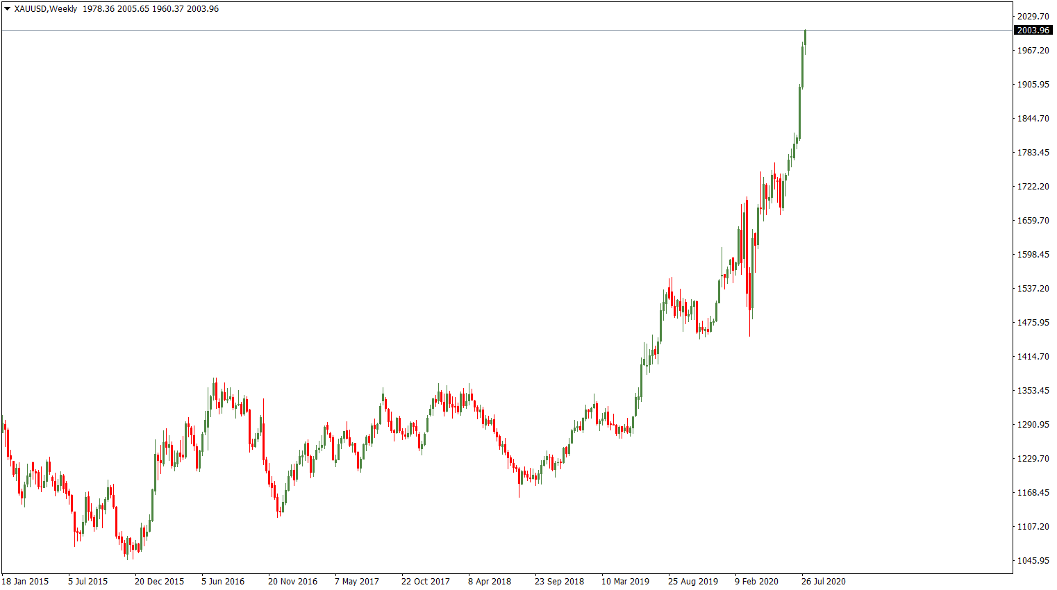 Cena zlata počas dnešného obchodovania prekonala hranicu 2000 USD za trojskú uncu. Aktuálne sa obchoduje na úrovni 2005 USD.