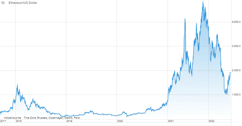 Zlúčenie očakávajú aj obchodníci. Ethereum dosiahlo cez víkend sedemmesačné maximum voči Bitcoinu na úrovni 0,0816 (ETHBTC). Rovnako pokoril aj 3-mesačné maximum v dolárovom vyjadrení nad hranicou 2 000 USD. „To je pozoruhodné najmä preto, že Ethereum predtým oproti Bitcoinu počas medvedích nálad na trhu kleslo, keď sa Bitcoiny správali ako relatívne bezpečné útočisko na vysoko špekulatívnom krypto trhu,“ dodáva analytik.