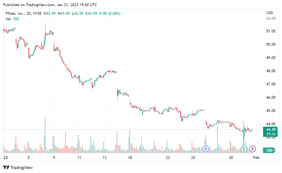 Graf: Akcie Pfizeru klesli za posledný mesiac o viac ako 15 %.