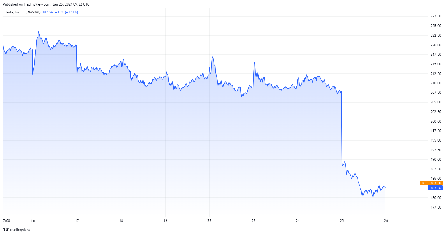 Tesla za štvrtý kvartál uplynulého roka ohlásila tržby na úrovni 25,17 mld. USD, trh počítal s 25,87 mld. USD. Zisk na akciu po očistení dosiahol 0,71 USD oproti 73 centom očakávaných trhom. Za odhadmi zaostala aj hrubá marža, ktorá dosiahla 17,6 % (očakávaných bolo 18,1 %).