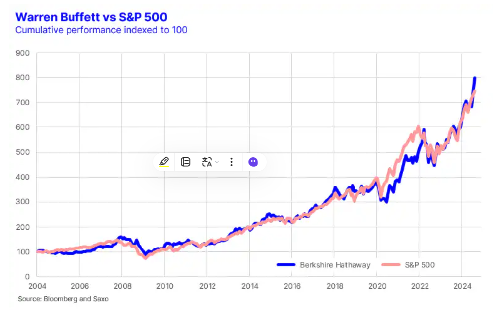 Warren Buffett je jedným z najväčších a najslávnejších investorov všetkých čias, ktorý výrazne porážal výkonnosť trhu najmä v 60-tych až 90-tych rokoch. Ako sa však Buffettovo portfólio zväčšovalo, dosahovať nadvýkonnosť bolo čoraz ťažšie. V období od januára 2004 až dodnes prekonal Warren Buffett index S&P 500 ročne len o 0,3 %, pričom dosiahol ročný výnos 10,6 %. No nesúviselo to len s veľkosťou.