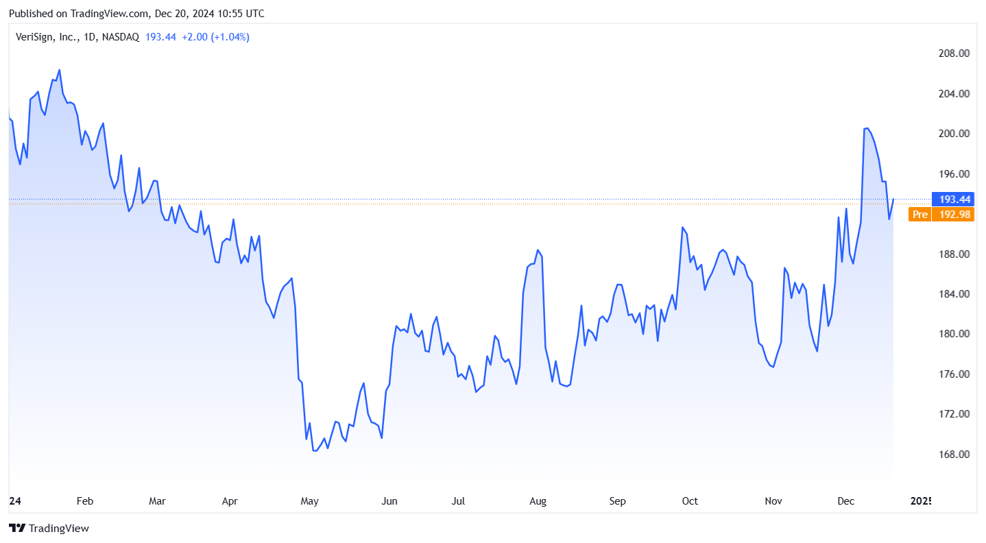 Graf: Vývoj akcií VeriSign od začiatku tohto roka