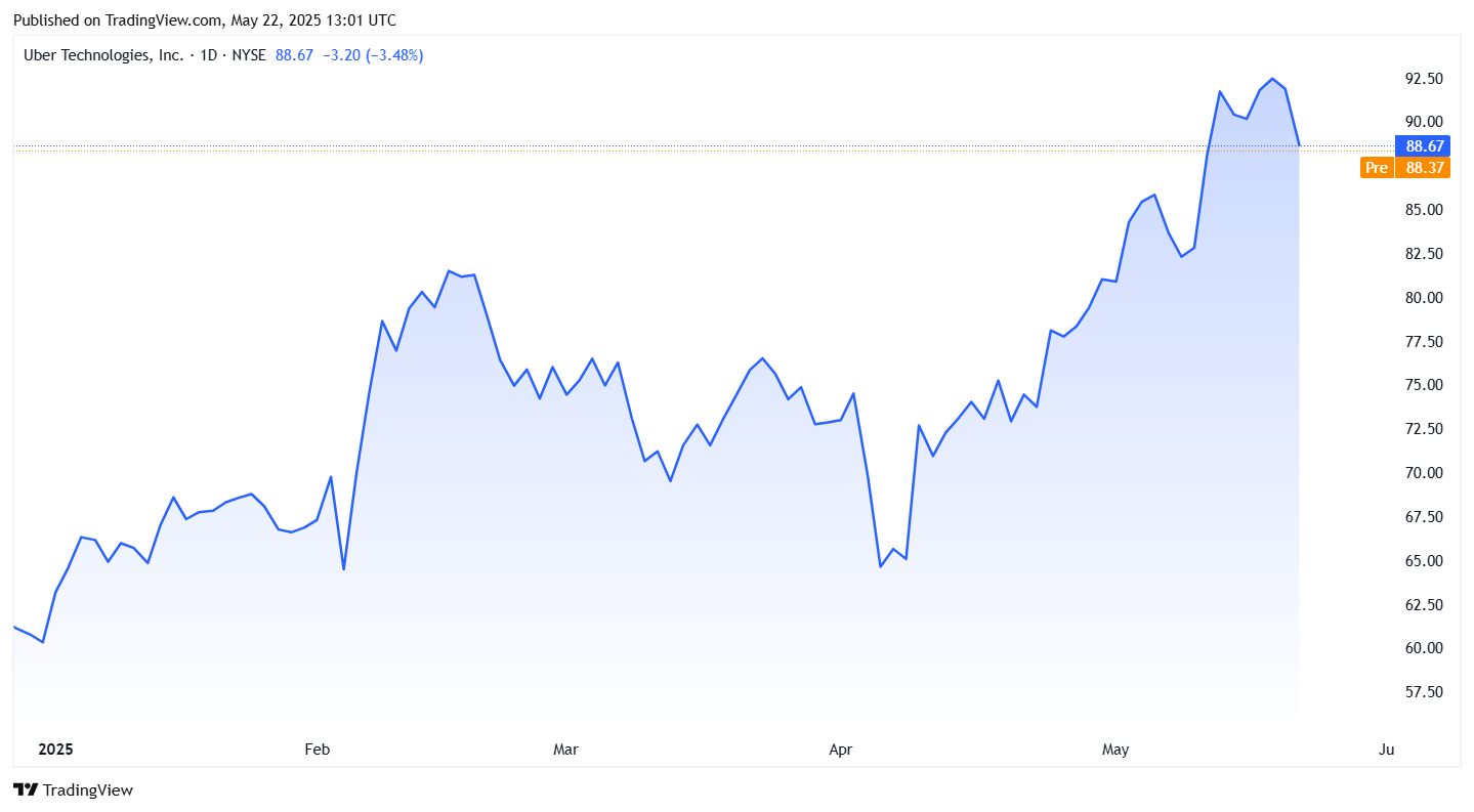 Akcie Uber vzrástli od začiatku roka 2025 o 40 % a za posledný mesiac pridali približne 20 %. Firma 7. mája zverejnila zisk za prvý štvrťrok, ktorý prekonal odhady Wall Street. Spoločnosť poskytujúca služby zdieľanej jazdy vykázala zisk na akciu vo výške 83 centov, čo je viac ako 50 centov, ktoré očakávali analytici. Tržby dosiahli 11,53 mld. USD, čo je medziročný nárast o 14 %, teda menej ako očakávaných 11,62 mld. USD.