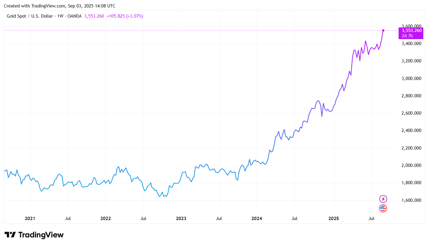 Zlato dosiahlo nové historické maximum. Spotová cena zlata sa v stredu vyšplhala až na 3561 USD za uncu, pričom od začiatku roka si pripísala už 35 %.
