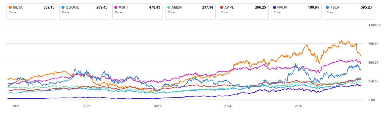 Úvod»PR»Kto ťahá trh a kto zaostáva? Prehľad najnovších čísel Magnificent 7